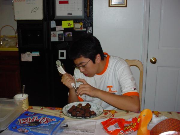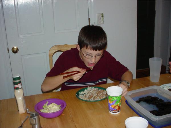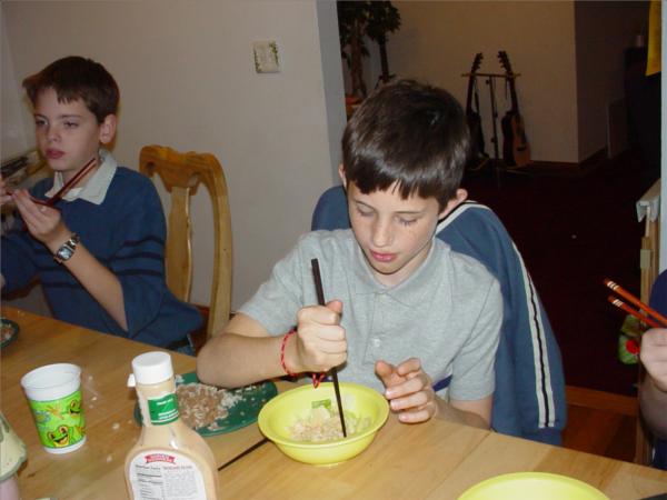 A few miscellaneous pictures from the month of November 2004. Seon's Mom sent us some chopsticks, which the boys beg to use at every meal!